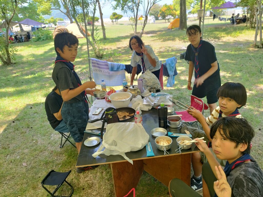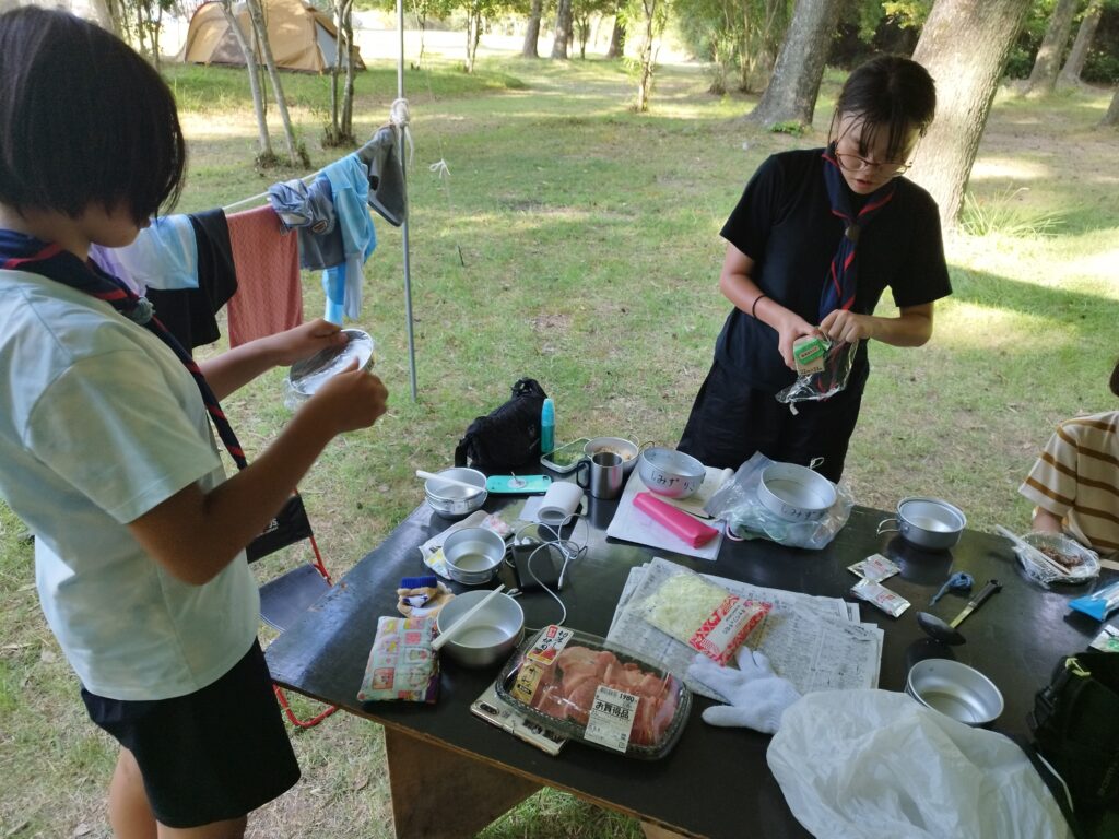 夕食はスカウトからの希望もあり焼肉と炊き込みご飯になります。ちょっと豪華に「オリーブ牛」の焼肉です。ここ香川ではなんでもオリーブを食べさせて育てるそうなので「オリーブ〇〇」というブランドがたくさんあります