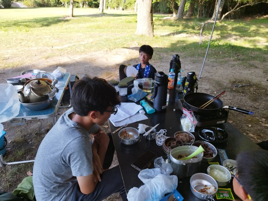 ある班は炊き込みご飯なのに忘れていて、白ご飯を炊いてしまいました。後から混ぜ込むそうです。いやいや・・・確かに熱は入っているので安全ですが・・・・おいしいのか?