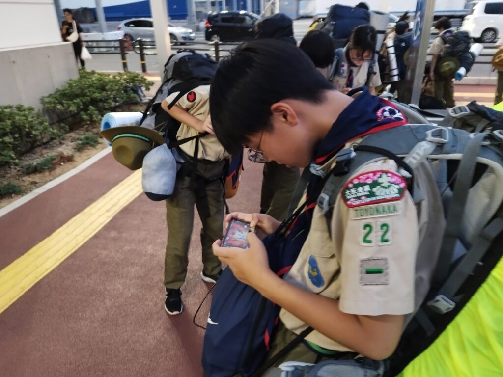 キャンプ場や船の中は電波の入らない環境でしたが、港に着くとスマホを触る生活に逆戻りです。それでもキャンプ中はあきらめていたのかスマホを触るスカウトも減っていましたよ